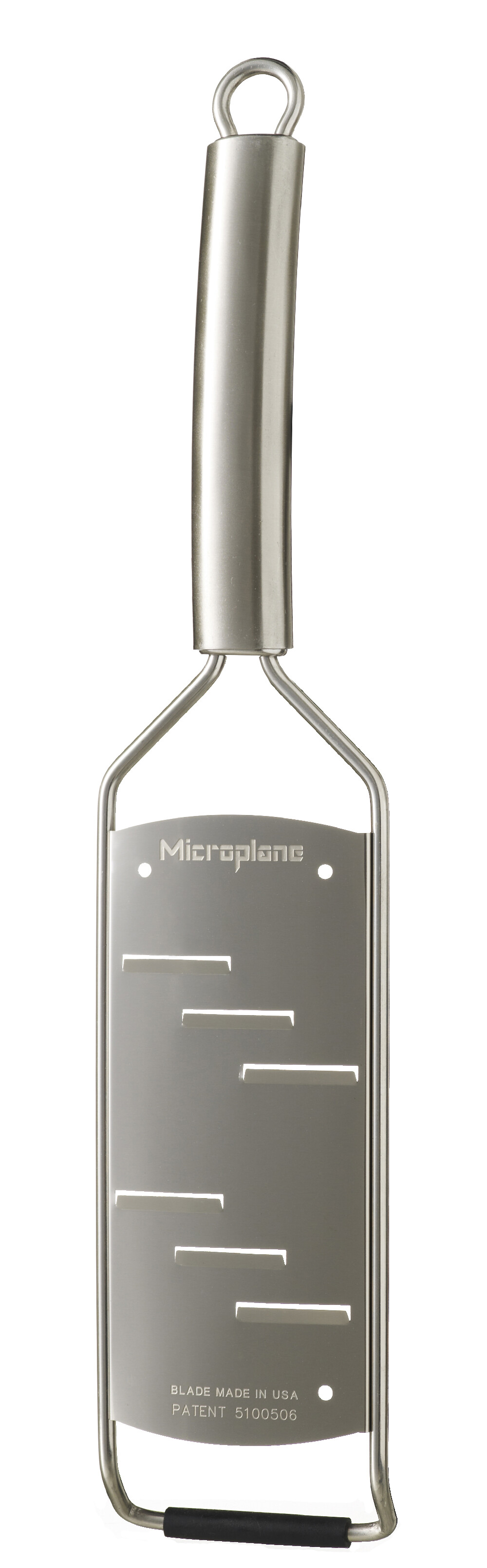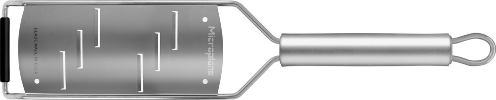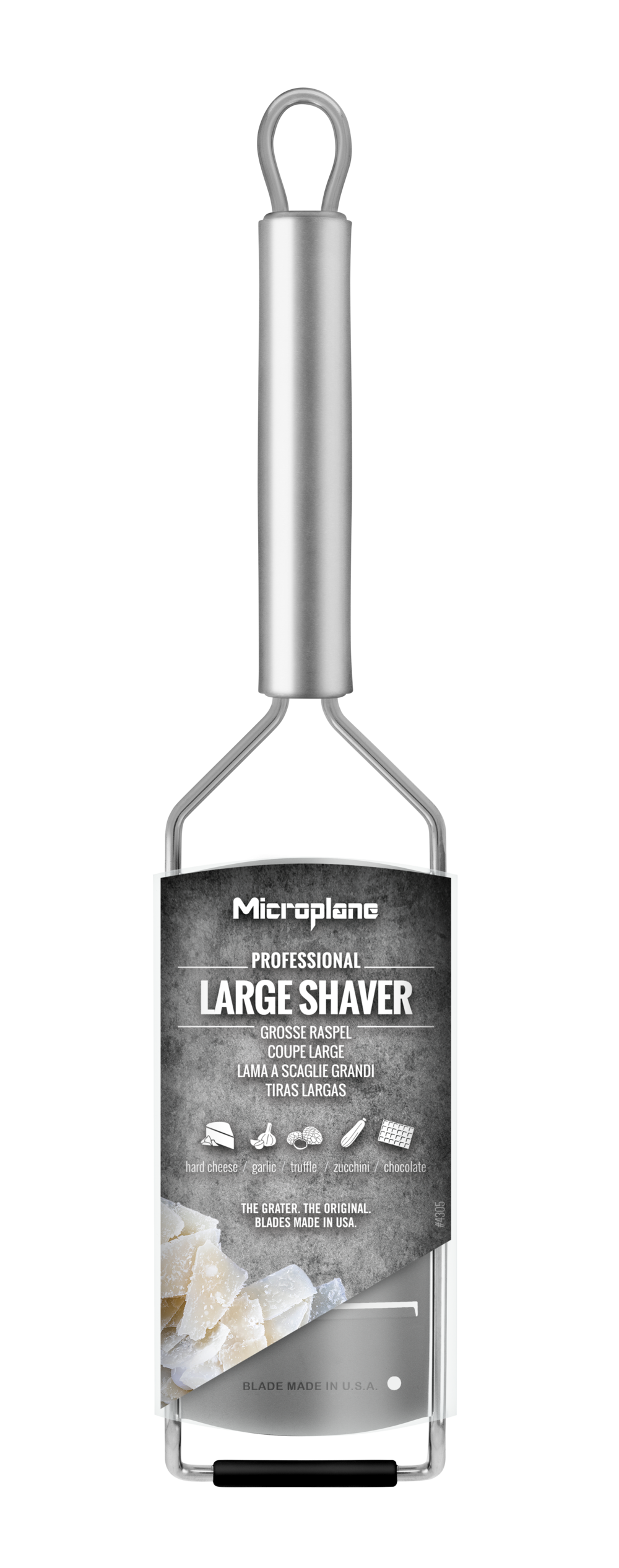 Mit der grossen Raspel und deren sechs länglichen, messerscharfen Klingen können Sie mühelos Schokolade, Karotten, Käse, Trüffel, Butter uvm. in breite Blättchen hobeln.