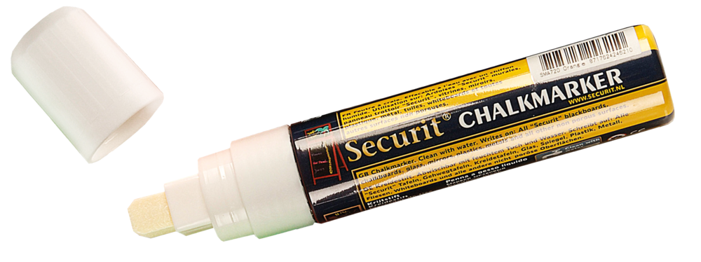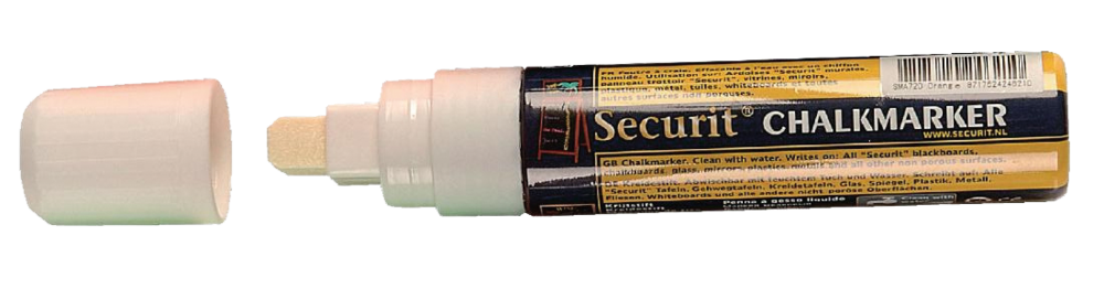 7-15 mm Schriftbreite, wasserlöslich, zum Beschriften von glatten Oberflächen, z.B. Glas, Plastik, Metalltafeln, Kreidetafeln.