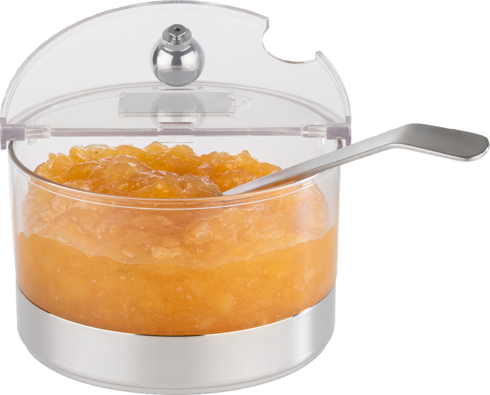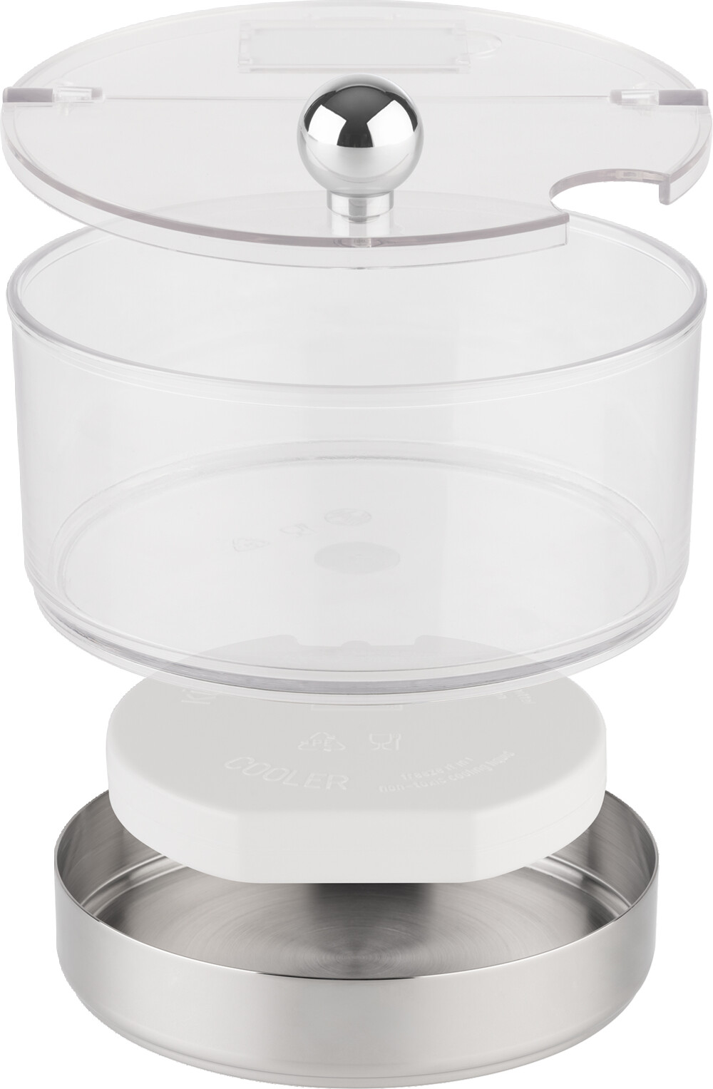 4-teiliges Set: Gefäss Inox poliert, 1 Kühl akku, 1 Schale (PC) Ø 14 cm, 1 klappbarer Deckel mit Beschriftungsschild, stapelbar, spülmaschinenfest