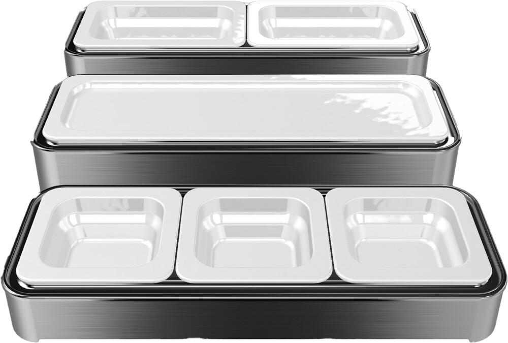 WMF Quadro bietet Ihrer Crew das komplette Instrumentarium für die individuelle Buffet-Komposition. Dabei fügt sich eines zum Anderen: Rahmen, Einsätze und Aufsätze. Optiken, Oberflächen und Materialien. Alles harmoniert optisch. Und alles harmoniert funktional – in hochwertiger WMF Verarbeitungsqualität.