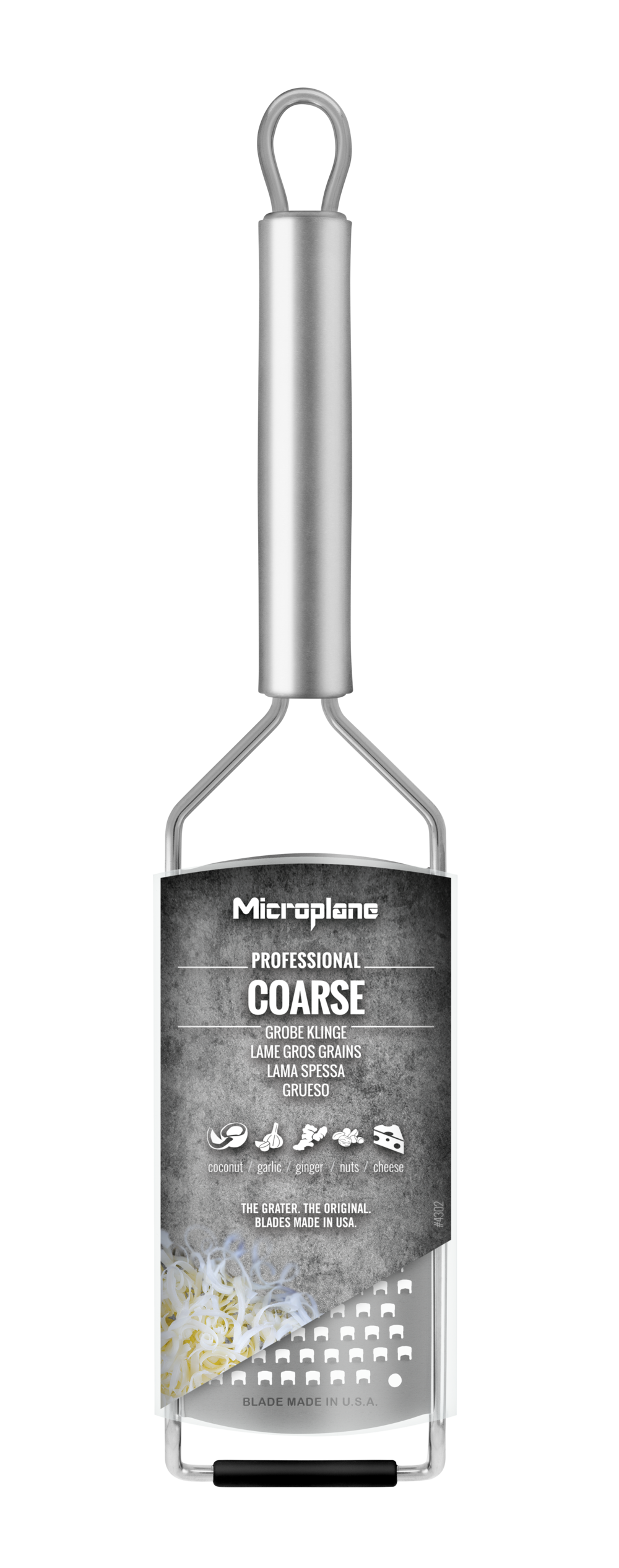 Mit der groben Klinge schneiden Sie Käse, Karotten, Knoblauch, Ingwer, Kokosnuss, Zwiebeln uvm. schnell und präzise etwas gröber, als mit der feinen Klinge.