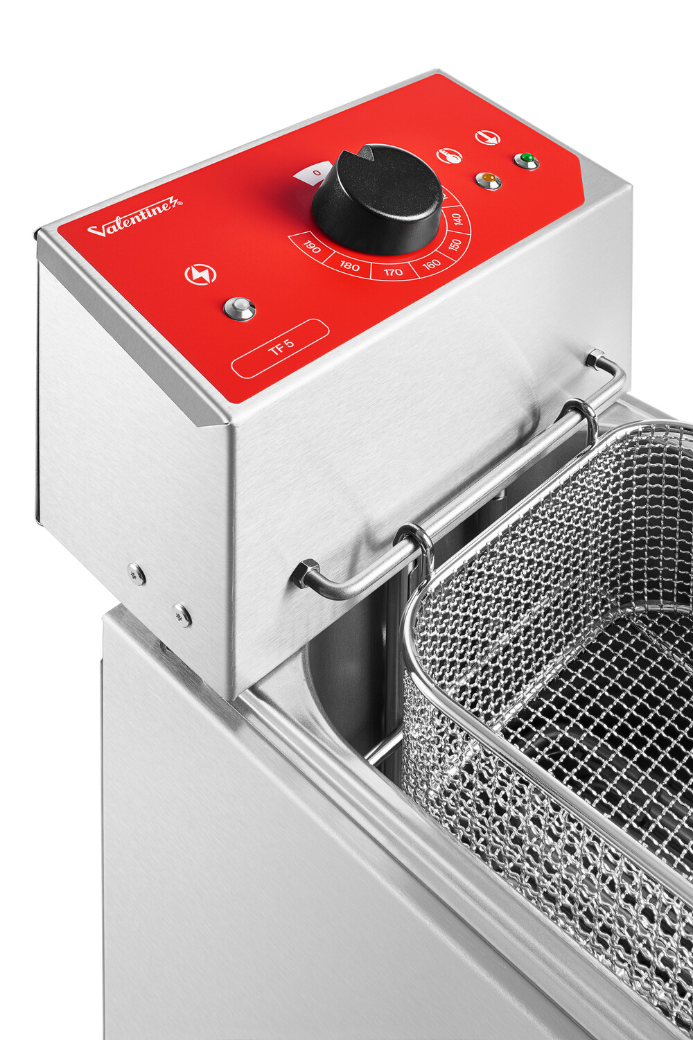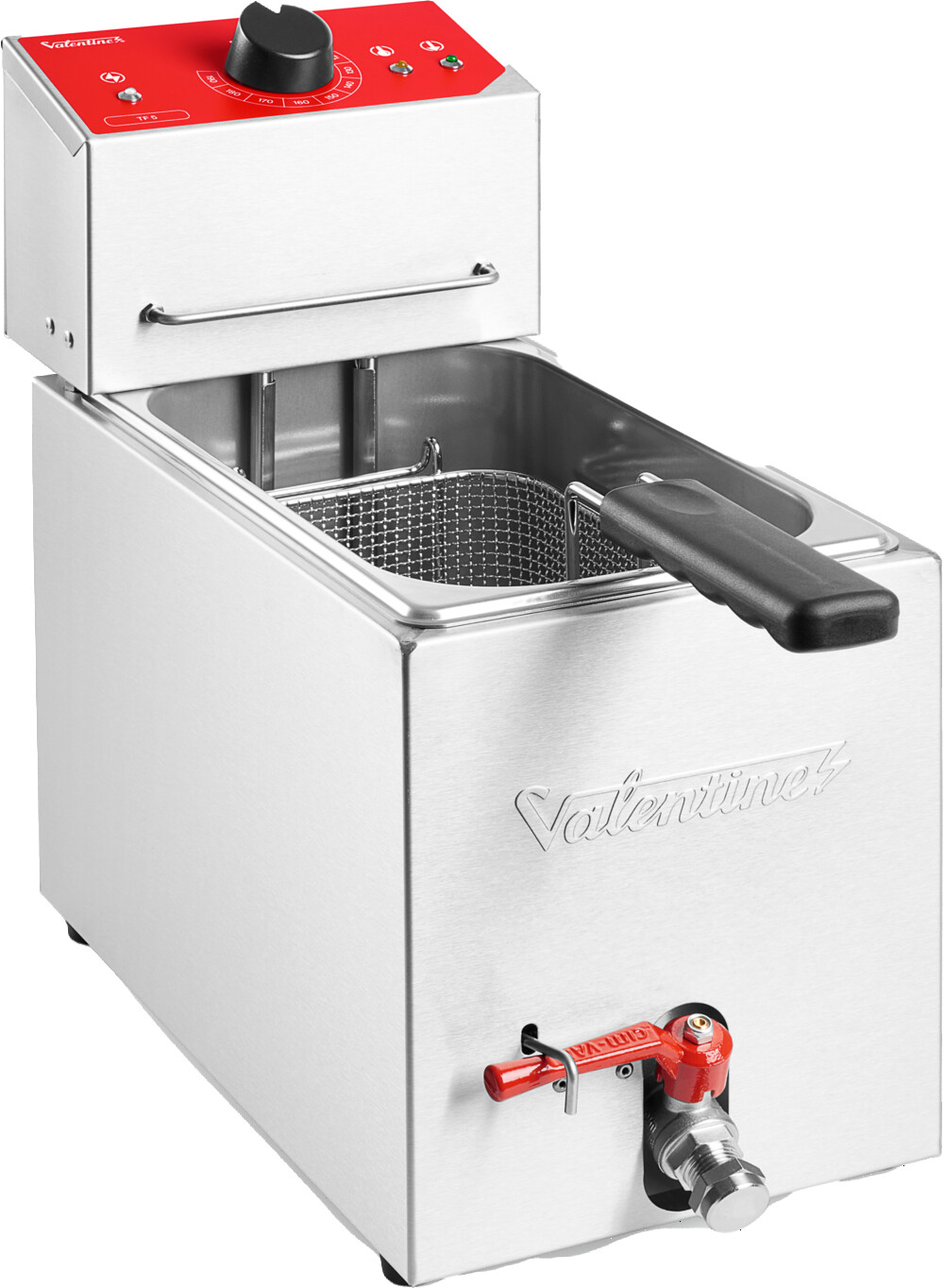 Komplett aus Edelstahl, gesicherter Öl-Ablasshahn mit schraubverschluss, das tiefgezogene und nahtlose Ölbecken mit abgerundeten Ecken erleichtert die Reinigung und verhindert Schmutzablagerungen, Friteuse aus drei Teilen für eine erleichterte Pflege und Reinigung; das Ölbecken und Gehäuse können in der Geschirrspülmaschine gereinigt werden.