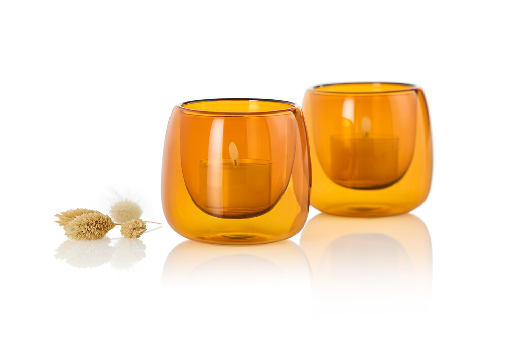 Windlicht Glas amber, Set 2Stk