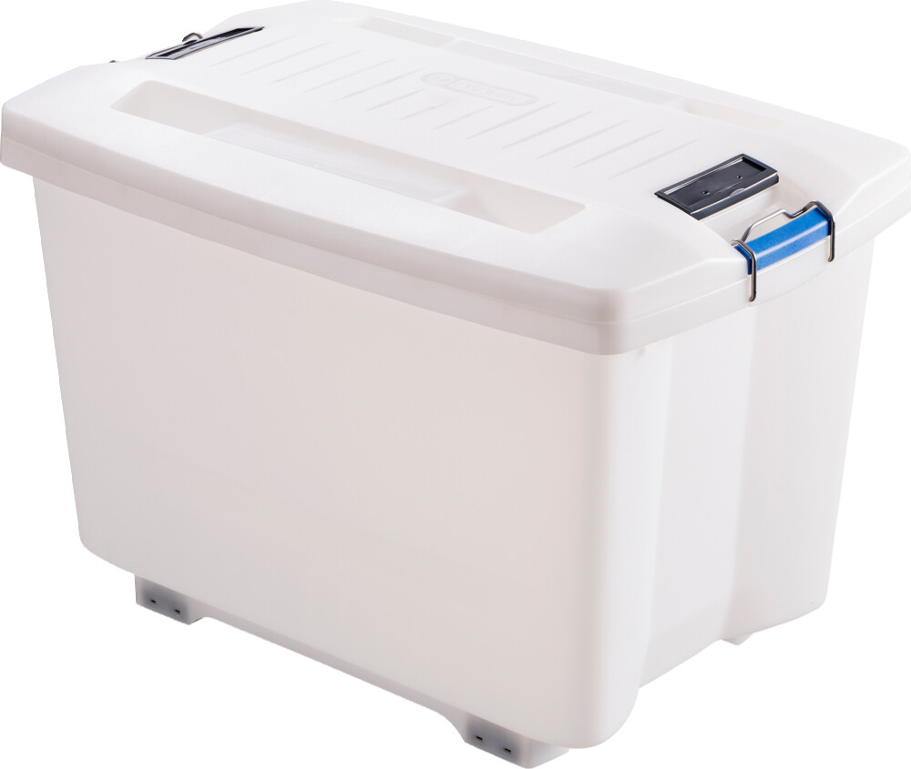 Bac avec couvercle pour la conservation et le transport des produits alimentaires avec une forte teneur en eau, tels que les fruits et légumes. L'ouverture d'aération garantit une circulation d'air durant le transport et réduit la condensation. Roulettes résistantes en polyamide. Empilable avec couvercle.