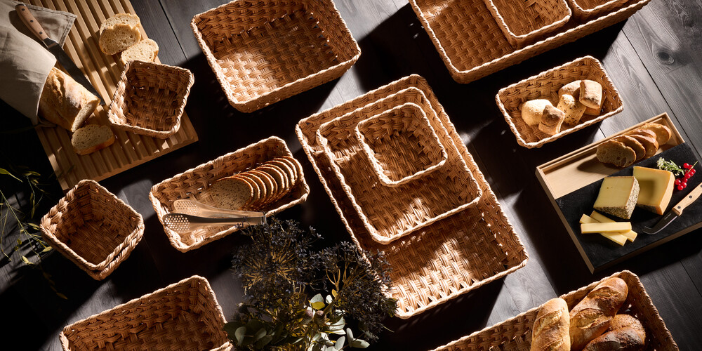 Robustes, faciles d'entretien et indéformables, les corbeilles TWIRL apportent une touche d'élégance à vos buffets, tables ou présentations. Idéales pour le pain, les fruits et les en-cas.