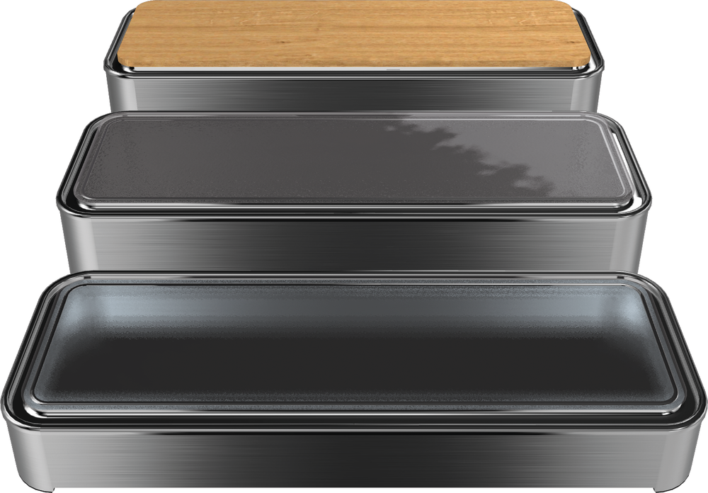 WMF Quadro offre à votre équipe l'ensemble des instruments nécessaires à la composition d'un buffet personnalisé. Une chose s'ajoute à l'autre : Cadres, inserts et compléments. Optiques, surfaces et matériaux. Tout s'harmonise visuellement. Et tout s'harmonise au niveau fonctionnel - dans une qualité de finition WMF haut de gamme.