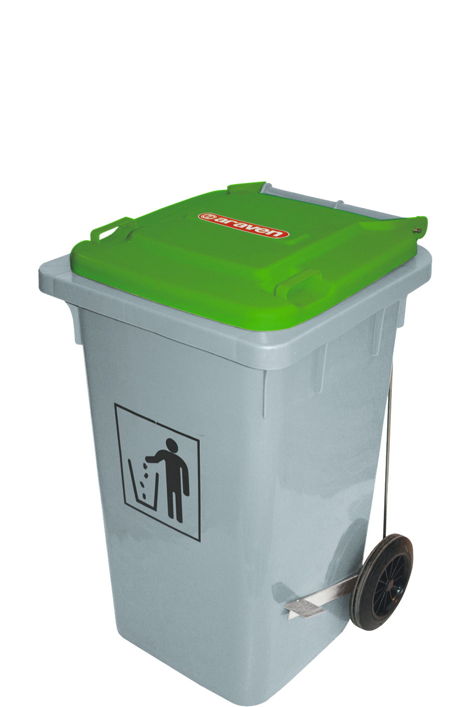 Fabrique de polyéthylène (HDPE), avec pédale pour l’ouvrage complet du couvercle, grandes roues en élastique facilite le transport.